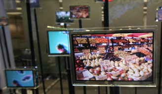 A website, 32 little TFT monitors and a barcode reader were connected to form a system where users can upload their favorite photos, and next time they enter the installation the system shows their collection on the monitors.